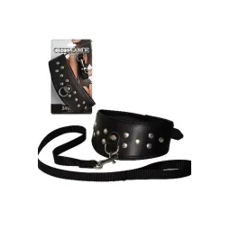 Покажите своему партнеру кто главный. А кожаный ошейник с поводком будет в этом деле просто незаменимым помощником. Стиль ему задают черный цвет и металлическая фурнитура. Крепление происходит за счет ремешка с пряжкой, а шлейка поводка закреплена карабином, который при желании можно снять. Диаметр ошейника 16,5-20,0 см. Длина поводка 80 см.