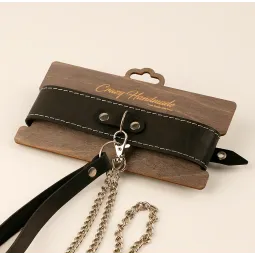 Двухслойный ошейник из натуральной кожи с белой строчкой. Поводок с карабином , отстегивается. Цвет чёрный. На фирменной подложке.