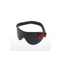 Маска на глаза закрытого типа (повязка) из натуральной кожи черного цвета, украшенная красным лаковым бантом является атрибутом для эротических ролевых игр и практик БДСМ.