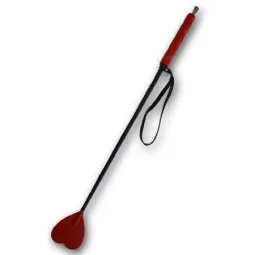Стек из искуственной кожи. Наконеник в форме сердца. Цвет: Черный с красным.