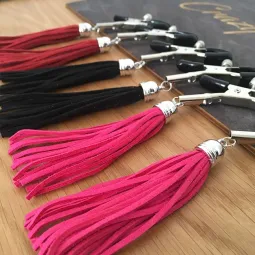 Зажимы на соски с замшевыми кисточками, цвет красный