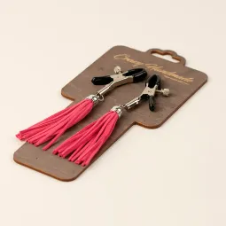 Зажимы на соски «прищепки» с кисточками из замши (Фуксия)